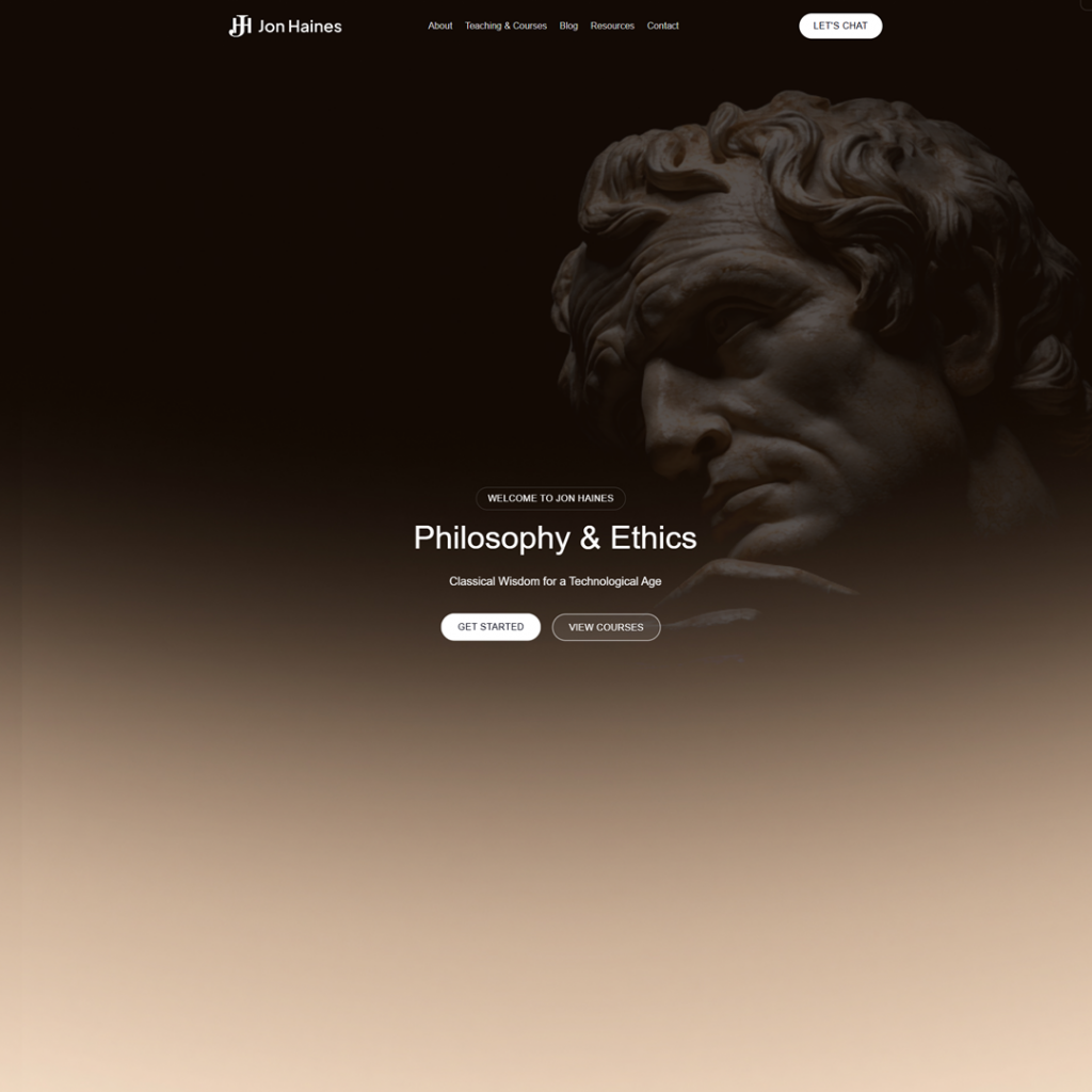 Jon Haines, a certified cybersecurity professional and avid philosophy writer, approached us for a comprehensive redesign of his personal website, jonhaines.com. His site serves dual purposes – showcasing his cybersecurity consulting services and hosting his philosophy blog. Our mission was to rebuild the site on WordPress using Multisite. We set out to elevate the site’s aesthetics and performance while preserving all of Jon’s content and the distinct focus of each section (cybersecurity and philosophy). The end goal: a fast, visually engaging, mobile-friendly site with cohesive branding across both sections and a streamlined user experience.