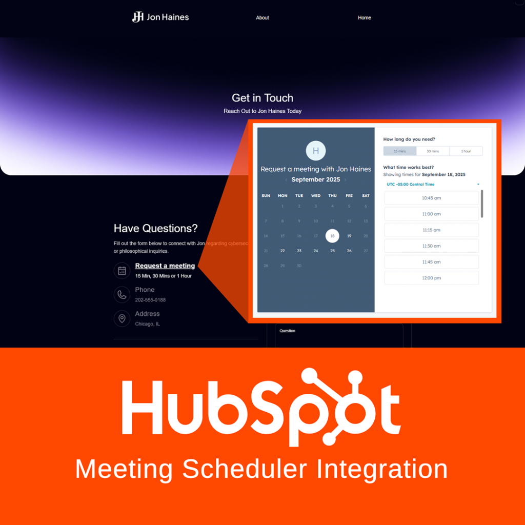 Suboptimal User Engagement: The old site had usability issues that could frustrate visitors. Jon wanted a more effective call to action – specifically, integration of his HubSpot meeting scheduler for easy bookings.